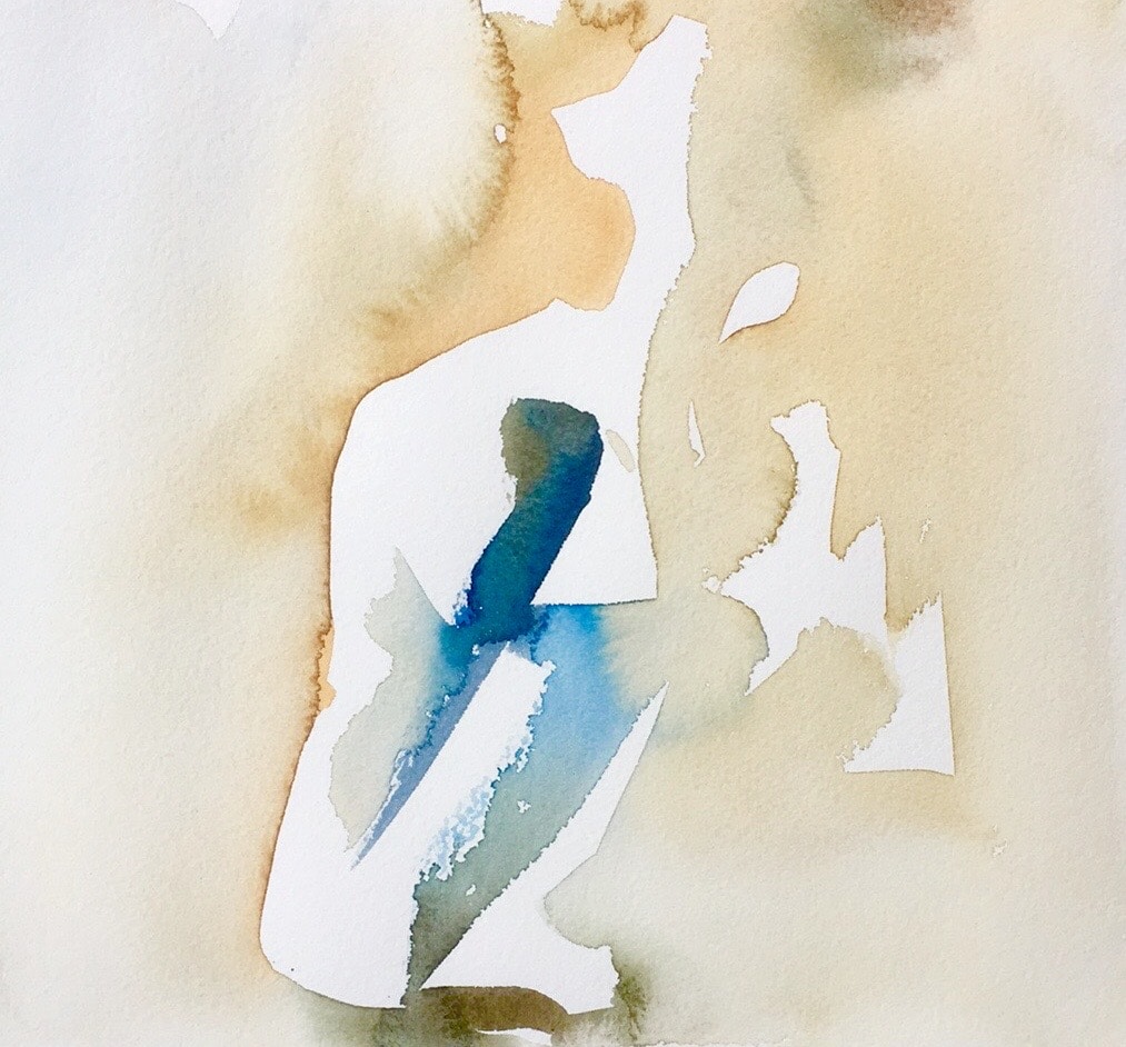 Original Malet med akvarel 30 x 30 cm Inklusiv passepartout & smal, sort ramme