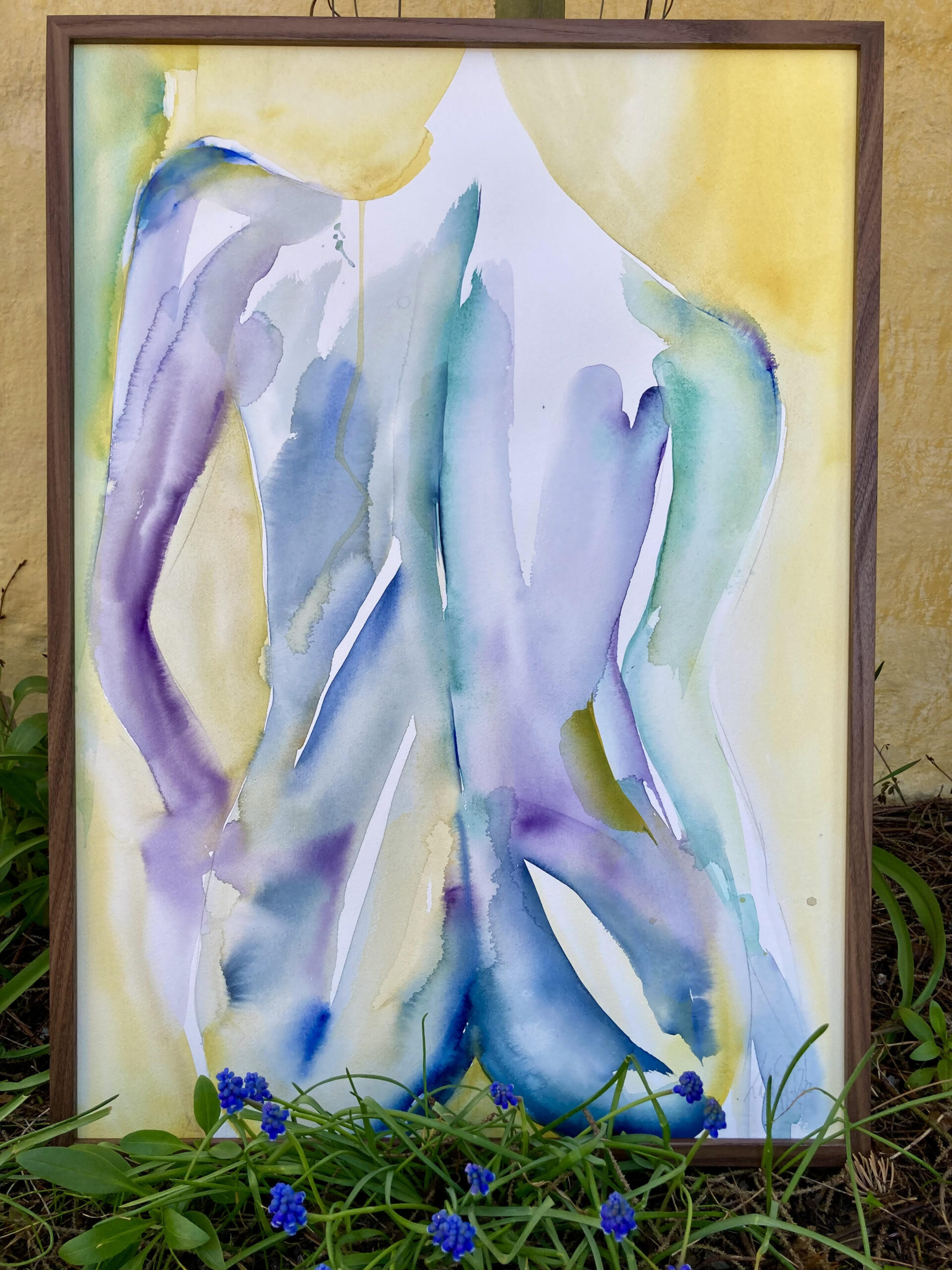 Original Malet med akvarel 50 x 70 cm Inklusiv mørk træramme