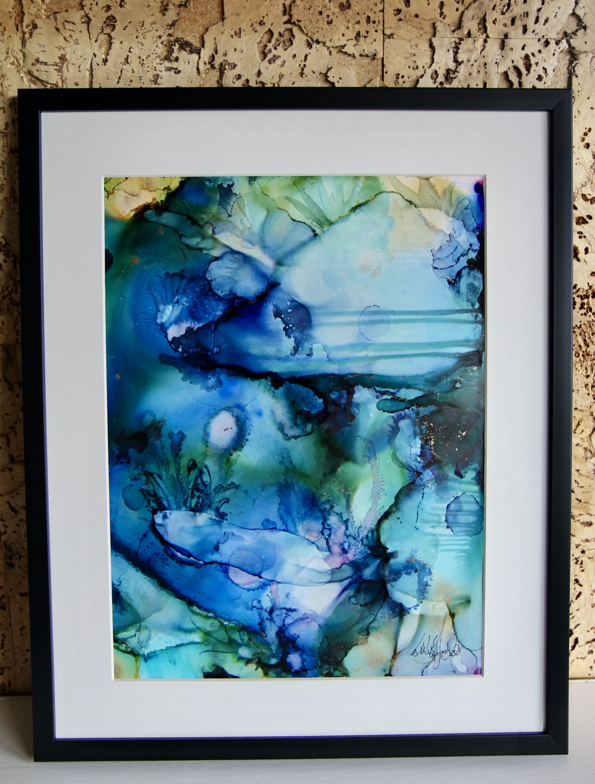 Original Malet med alkohol ink 40 x 50 cm Inklusiv smal, sort træramme