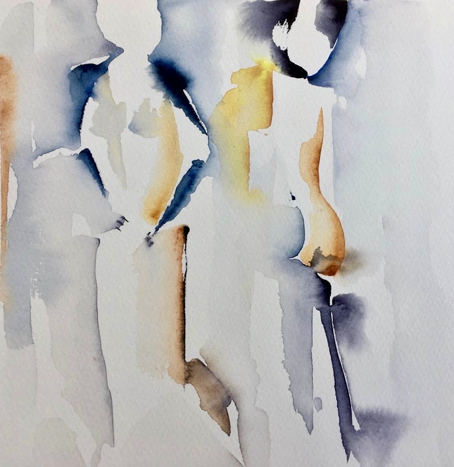 Original Malet med akvarel 30 x 30 cm Inklusiv passepartout & smal, sort ramme